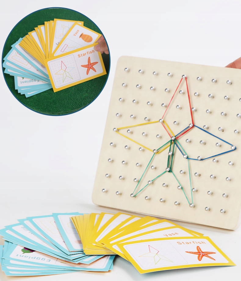 ✅ Геоплан - розвиваюча іграшка, яка допомагає дітям розвивати логічне, просторове та творче мислення. Вона передбачає розкладання візерунків із різнокольорових гумок на дерев’яній дошці.