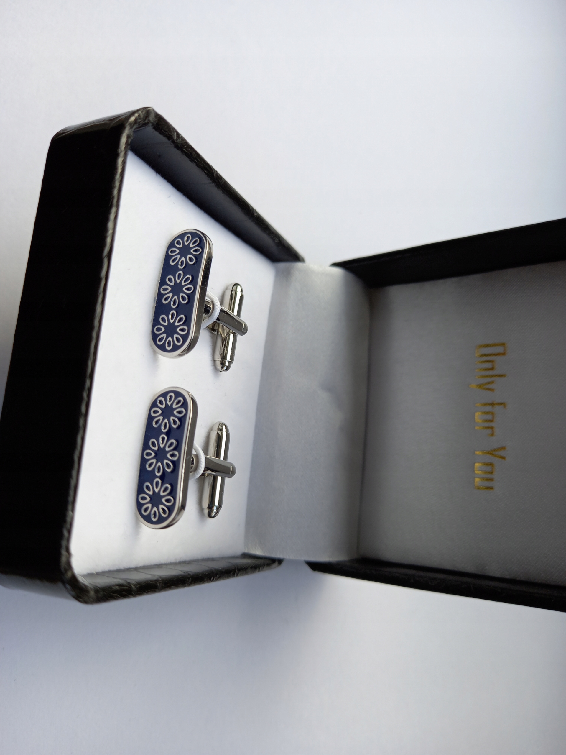 Набір захоплюючих сорочок. Зазюки були виготовлені з дорогоцінного металу, пофарбованого барвистими емалами та упаковані в чорний або синій захоплюючі "оригінальні сорочки". Для додаткового заряду ми можемо упакувати манжети в ексклюзивному випадку з схемою шкіри змії, показаним на подальших фотографіях.