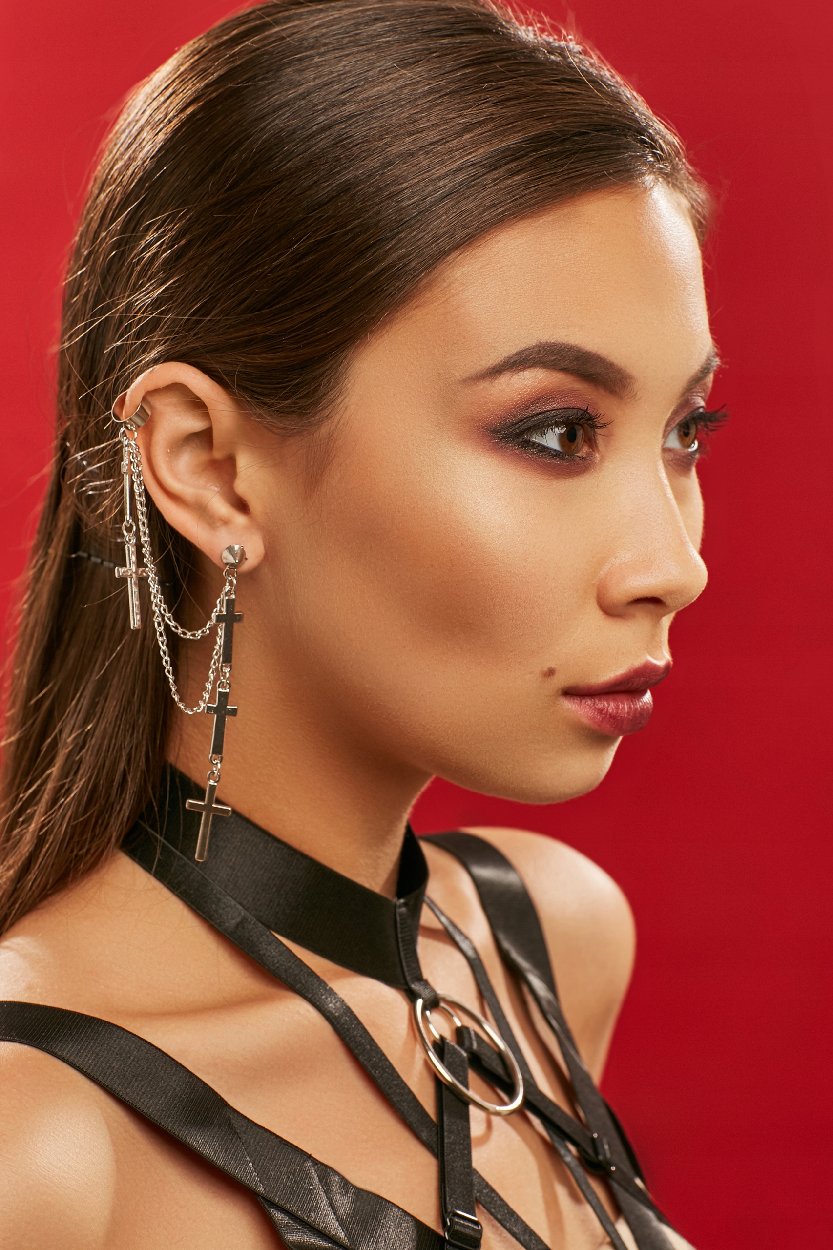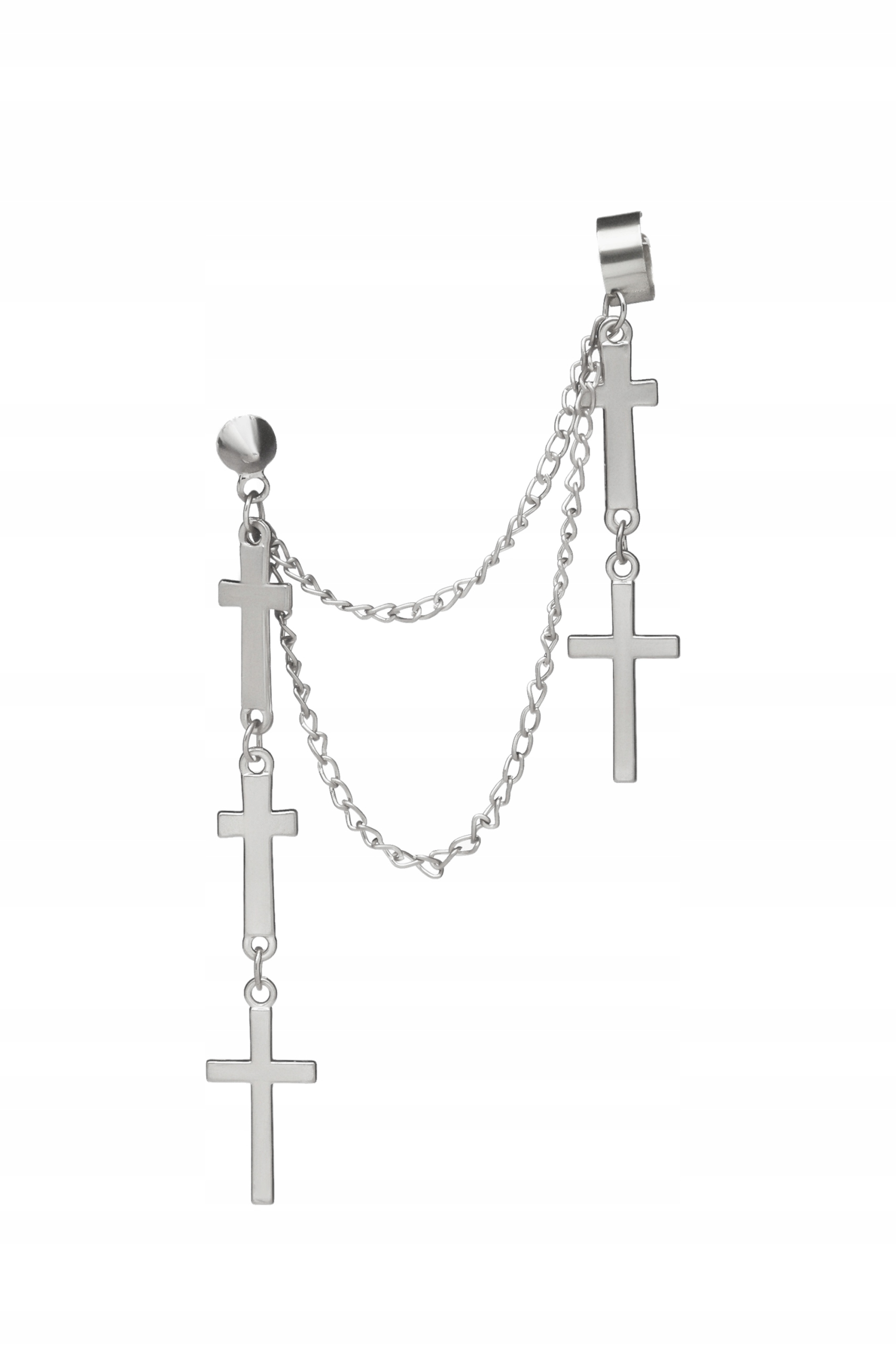 манжета виготовлена з металу, легкої та елегантної. Закріплений замком кола та невеликим кільцем розблокування. Зручний кріплення дозволяє легко зняти та надіти ювелірні вироби. Кільце прикріплено до задньої частини вуха. Осі, прикрашений плетеними ланцюгами та підвісками у вигляді хрестів. Усі елементи сережки стабільні. Особливості: ✓ Champ Cover ✓ Hipoalalergic Stop ✓ Galwanial Spop, Metal не затемнює ✓ безпечне безпечне дослідження для спорту, кліпи ✓ideal для кожного мають можливість ✓ vage 8 гр