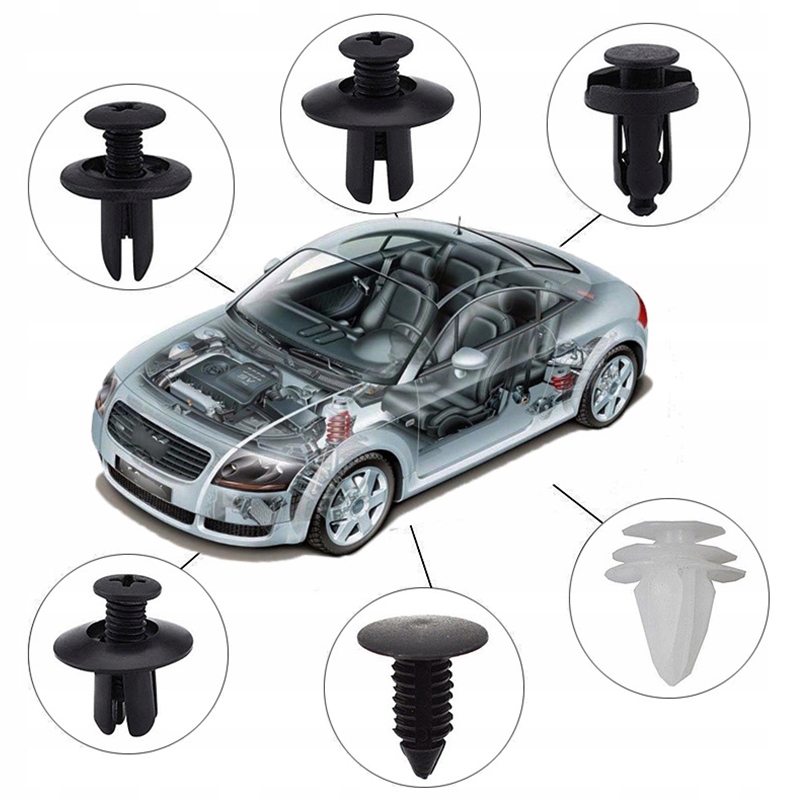 Різні фіксуючі елементи, що відповідають потребам різних частин автомобіля. Легкий вибір та колекція, адже дюбелі та заклепки зберігаються в різних місцях.