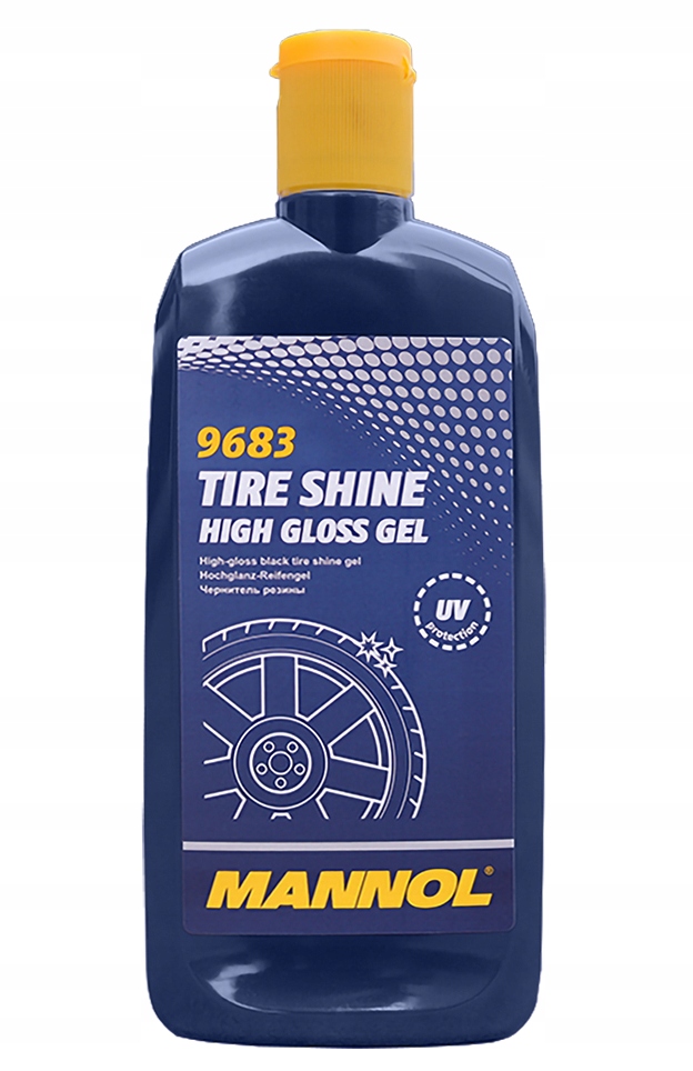 Tire Shine — це особливо стійкий і водостійкий засіб для чорніння шин, який надає шинам тривалий і інтенсивний чорний колір і блиск.