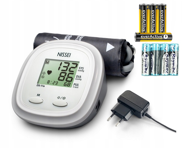 Цікавою функцією також є, серед іншого, індикація порушень вимірювання (цей прилад для вимірювання артеріального тиску сам вказує, наприклад, на рух користувача під час тесту). Тонометр для плеча NISSEI DS-11 має вбудовану пам’ять на 60 результатів і дозволяє обчислювати середнє значення.