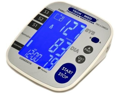 TECH-MED TMA-6 OMEGA - це сучасний тонометр для людей похилого віку з підвищеним тиском, які цінують комфортне вимірювання. Тонометр характеризується високою точністю вимірювання - еквівалентною точності вимірювань, проведених кваліфікованим медичним персоналом при аускультації за допомогою механічних сфігмоманометрів. Ця точність була підтверджена клінічними випробуваннями. Виконати точне вимірювання артеріального тиску надзвичайно просто - для цього потрібно натиснути лише одну кнопку. Дуже великий ергономічний РК-дисплей забезпечує легке читання результату вимірювання.