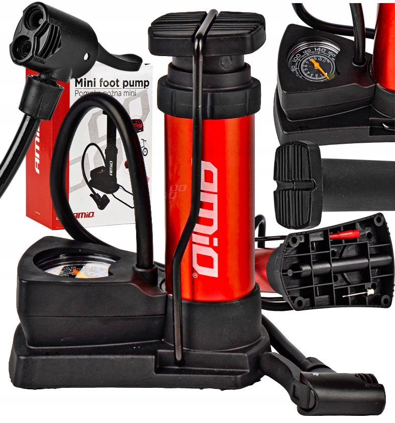 Надійний міні-ножний насос із максимальним тиском 11 БАР / 160 PSI. Простий у використанні та завдяки невеликому розміру його легко носити та зберігати.