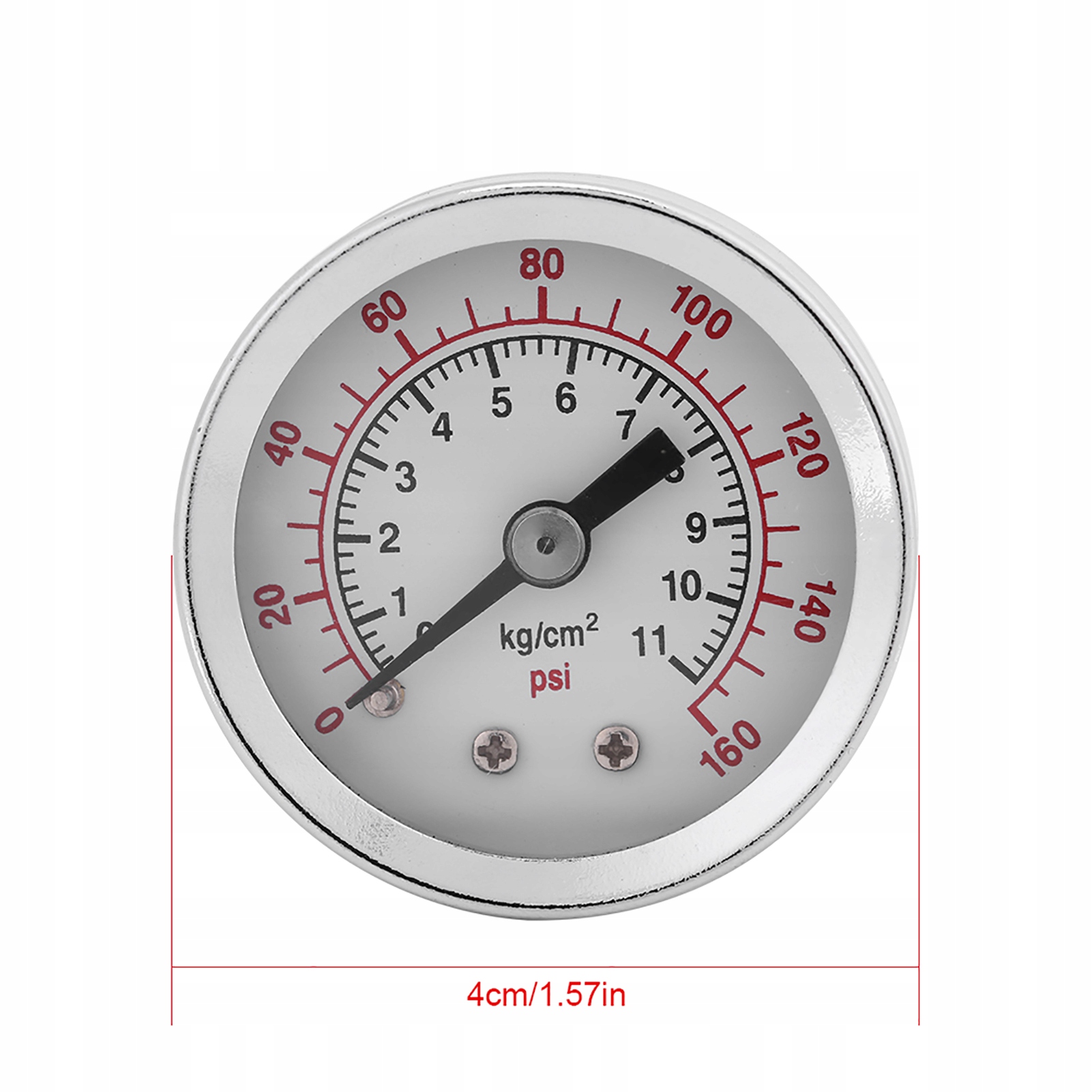 - Циферблат годинника діаметром 4 см, подвійна шкала для вимірювання psi та кг/см².