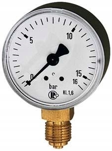 Конструкція: стандартний манометр з трубкою Бурдона, пластиковий корпус і однобаркова шкала відповідно до EN 837-1. Клас точності 1,6.