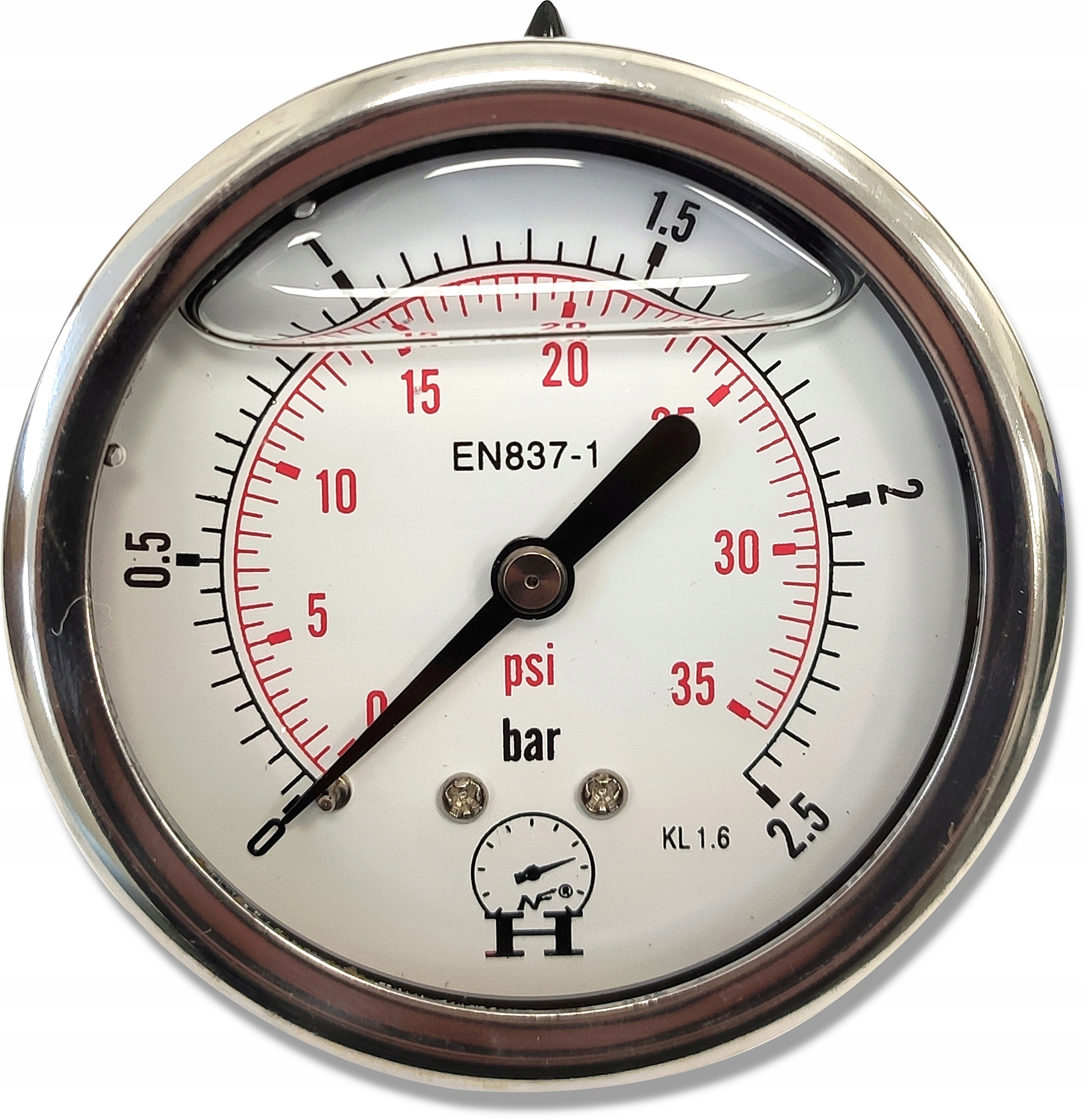 Гліцериновий манометр ідеально підходить для машин і пристроїв з гідравлічним приводом.