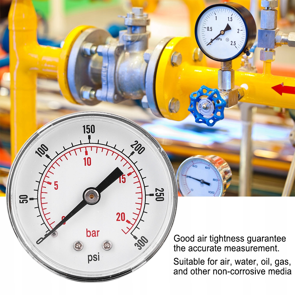 Манометр, 50-мм циферблат, задній роз’єм 1/4 BSPT для повітря, води, нафти, газу (0-300 фунтів на квадратний дюйм, 0-20 бар)