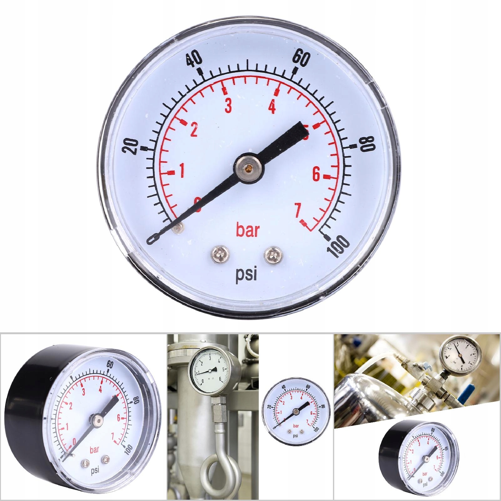 Манометр, 50-мм циферблат, задній роз’єм 1/8 BSPT для повітря, води, нафти, газу (0-100 фунтів на квадратний дюйм, 0-7 бар)
