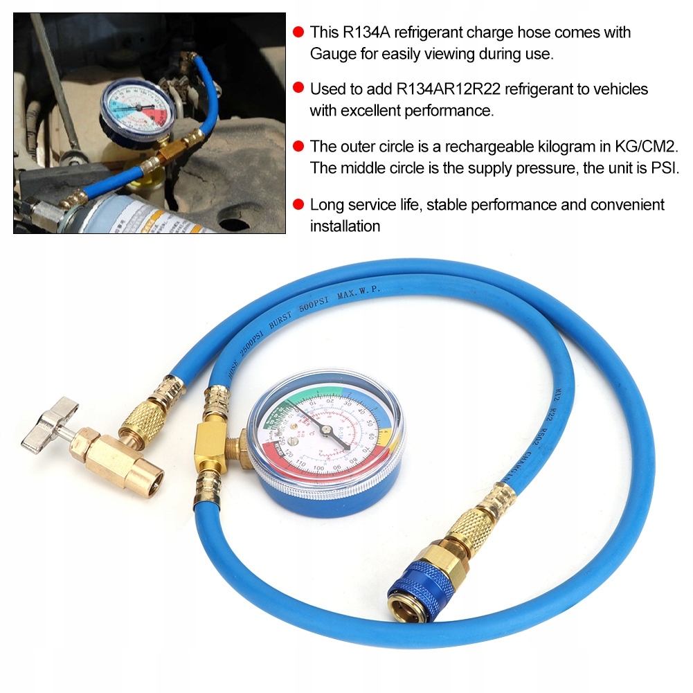 Цей зарядний шланг для холодоагенту R134A оснащено манометром для легкого перегляду під час використання.