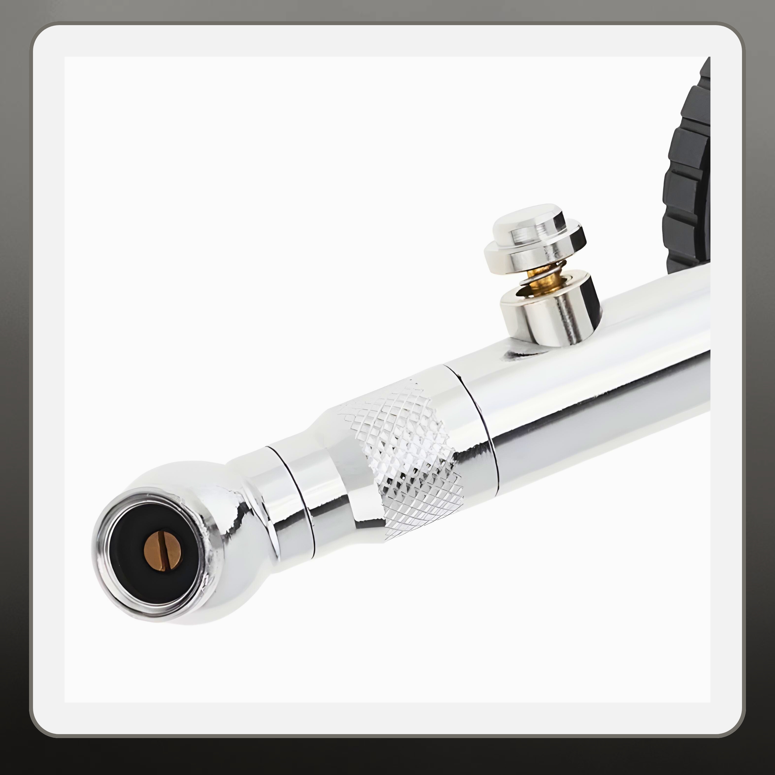 ✅ Чи легко ним користуватися? Звичайно! Просто покладіть наконечник на клапан і прочитайте результат на прозорому циферблаті.
