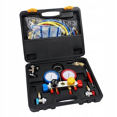 - для коефіцієнта охолодження R410A R22 R22 R134AZ гумово Гакцик. Використання змії: червоний для високого тиску. Синій для низького тиску. Жовта пляшка з охолоджуючою рідиною. Підходить для охолодження/зарядки Freon в системах ОВК, тестування тиску в кондиціонуванні кондиціонування та виявлення витоку коефіцієнта охолодження тощо.