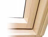 Вікно FTP-V U4 – мансардне вікно з поворотною конструкцією, виготовлене з високоякісної соснової деревини, шарове склеювання, вакуумне просочення виготовлене за допомогою система зміцнення конструкції мансардного вікна topSafe та технологія thermoPro