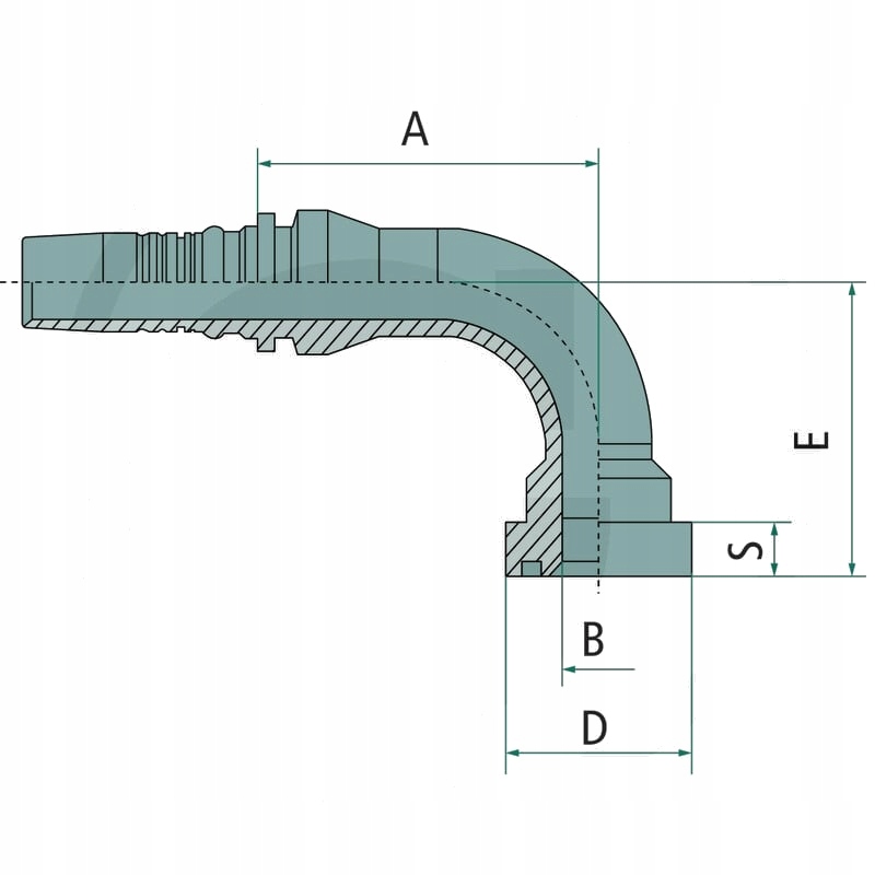 Категорія: Силова гідравліка та пневматика / Шланги та фітинги / Гідравлічні шланги та фітинги MANULI / Фітинги MANULI - Interlock 4SH - R15 / SAE з фланцем / 9000 PSI - SFS-CAT 90° - IL
