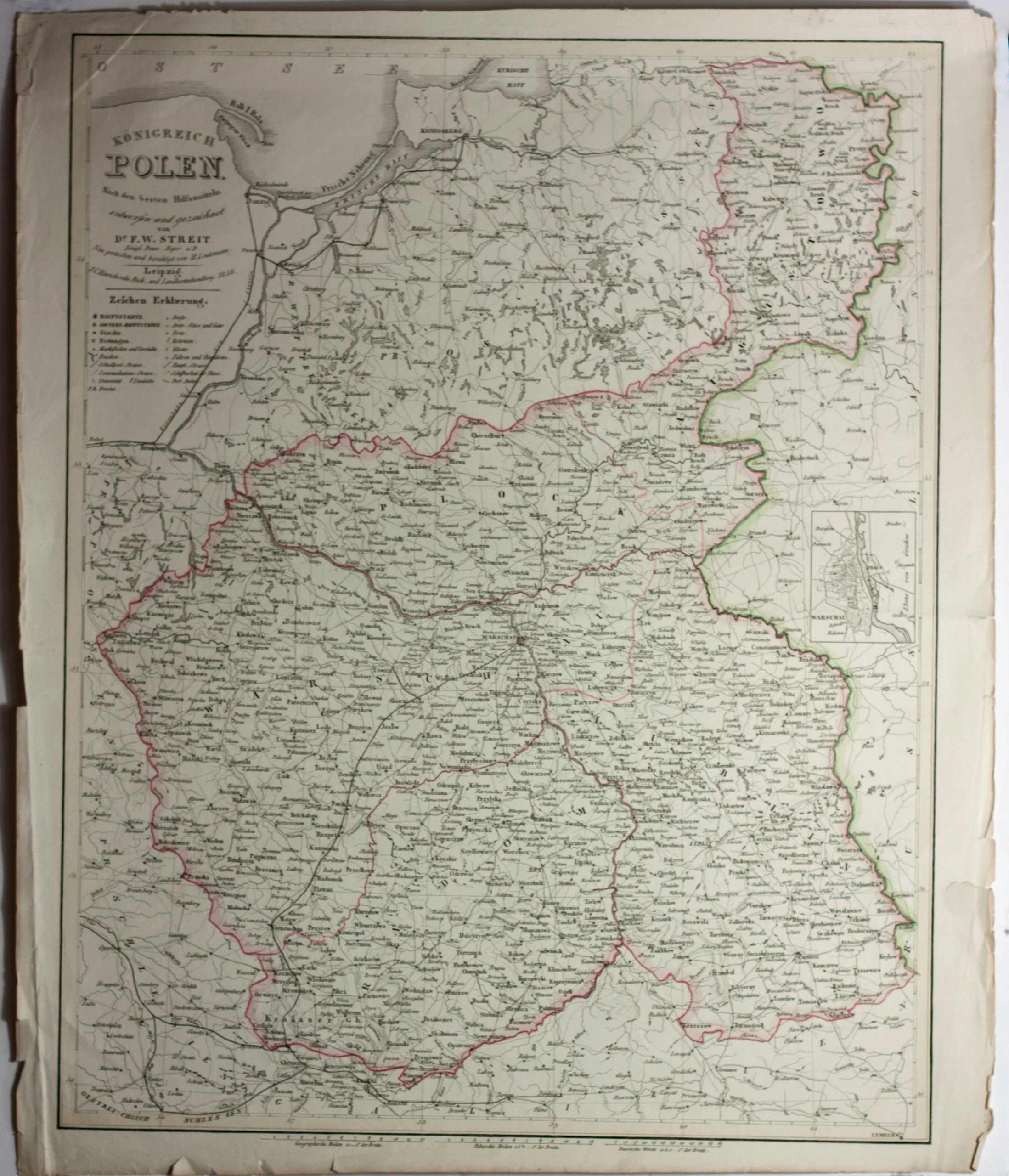 Карта Королівства Польського - Köonigreich Polen entwurfen und gezeichnet von Dr F. W. Streit, опублікована в Hinrichs Buch und landkarten Handlung у 1856 році.