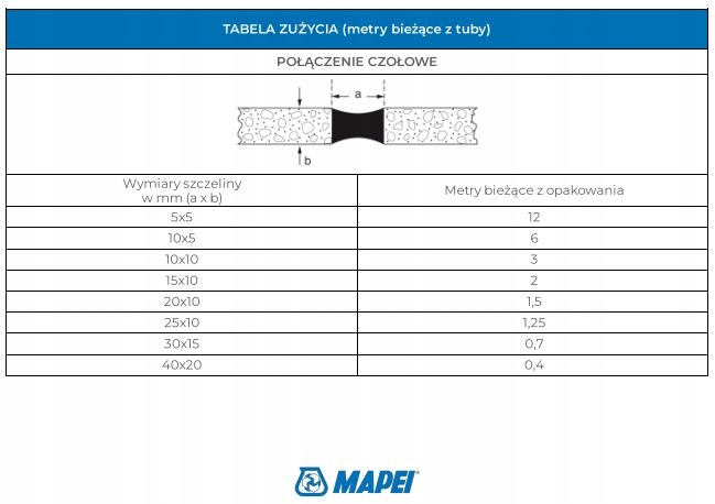 - Mapesil AC залежить від розміру з'єднання.