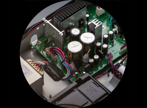 У сильнострумовому джерелі живлення, який використовується в програвачі, використовуються діоди Шотткі, сильнострумові накопичувальні конденсатори та покращені стабілізатори напруги .