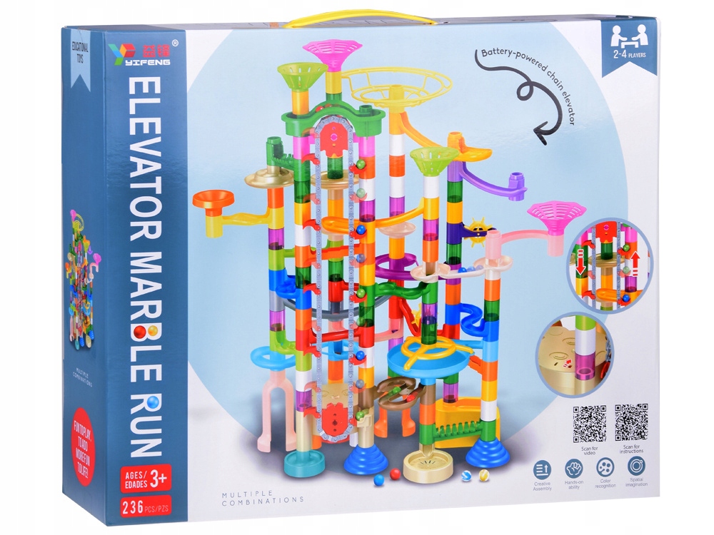 Доріжка з м'ячем — ідеальна іграшка, яка поєднує в собі елементи розваги, навчання та творчості. Завдяки 236 елементам і функціям, що живляться від батарейок, він надає безмежні можливості будувати та відкривати захоплюючий світ фізики у формі гри.
