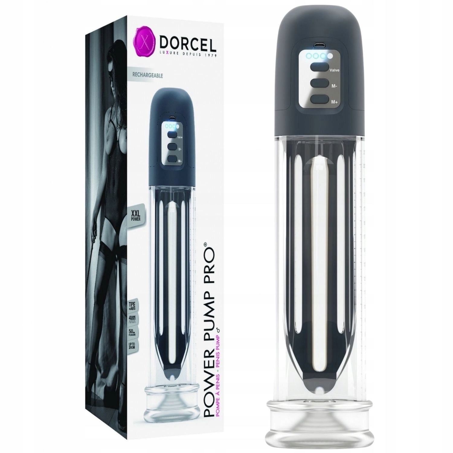 Power Pump Pro — це найновіший еротичний гаджет, розроблений виключно для чоловіків від французького бренду Dorcel. Цей унікальний пристрій являє собою насос для пеніса, який не тільки смоктає, як під час оральної гри, але також може збільшити пеніс. Завдяки цьому мастурбація може подарувати абсолютно нові відчуття, знову стаючи захоплюючою розвагою. Насос дозволяє відчути відчуття, що нагадують справжній мінет. У комплекті два змінних наконечника з термопластичного еластомеру. Power Pump Pro має чотири програми всмоктування, включаючи надсильний рівень!