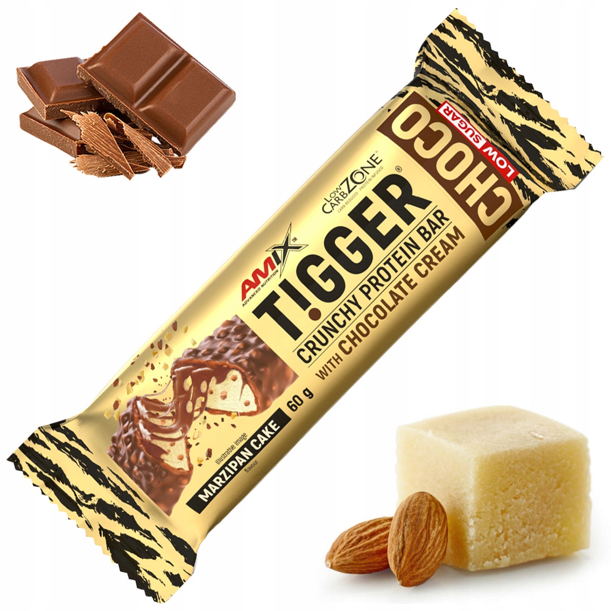 Батончик з високим вмістом білка – марципан із шоколадом Amix Tigger із низьким вмістом цукру
