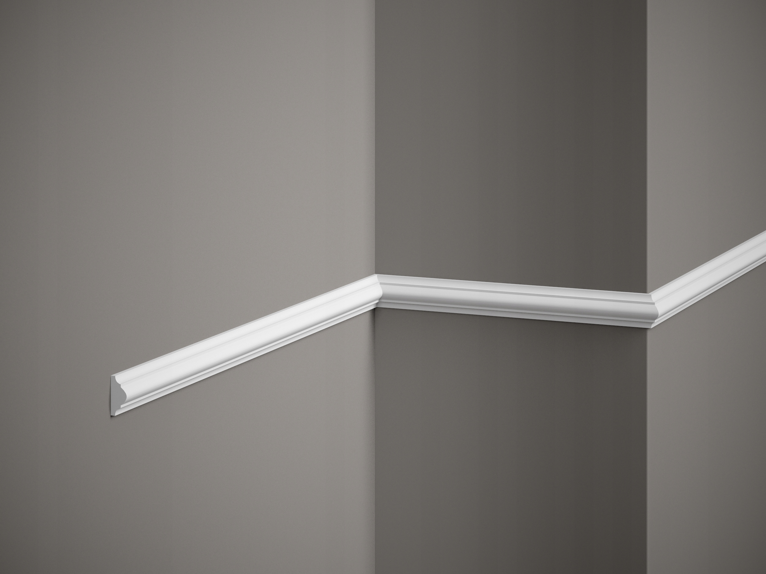 MD003 Стінна смуга - це унікальна конструкція, яка буде ідеальною як прикраса стін в інтер'єрах у стилі гламуру. Цей малюнок - це трикутний профіль, прикрашений декоративними різцями.