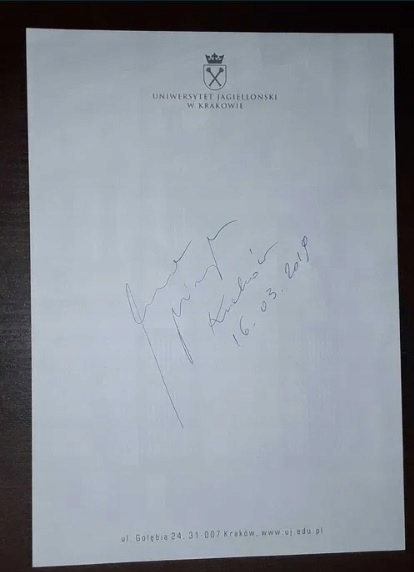 Підпис на аркуші паперу, використаного під час «5-го Краківського диктанту» (2019).