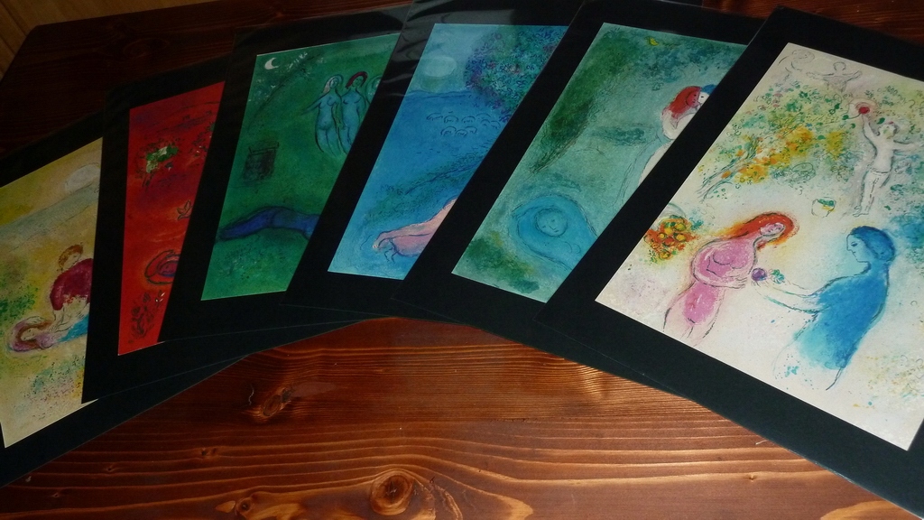 Я хочу запропонувати офсетну літографію Марка Шагала, опубліковану George Braziller New York для цінної серії «Дафніс і Хлоя» (літографії з цієї серії були виставлені на аукціон таких поважних аукціонних будинків, як, наприклад, Sotheby's - фотографія обкладинки аукціонного каталогу додається). Ілюстрація була опублікована за згодою автора в 1977 році (ще за життя художника). Видання на щільному папері, друга сторона аркуша порожня. Ілюстрація ніколи не була оформлена в раму, у дуже хорошому стані.
