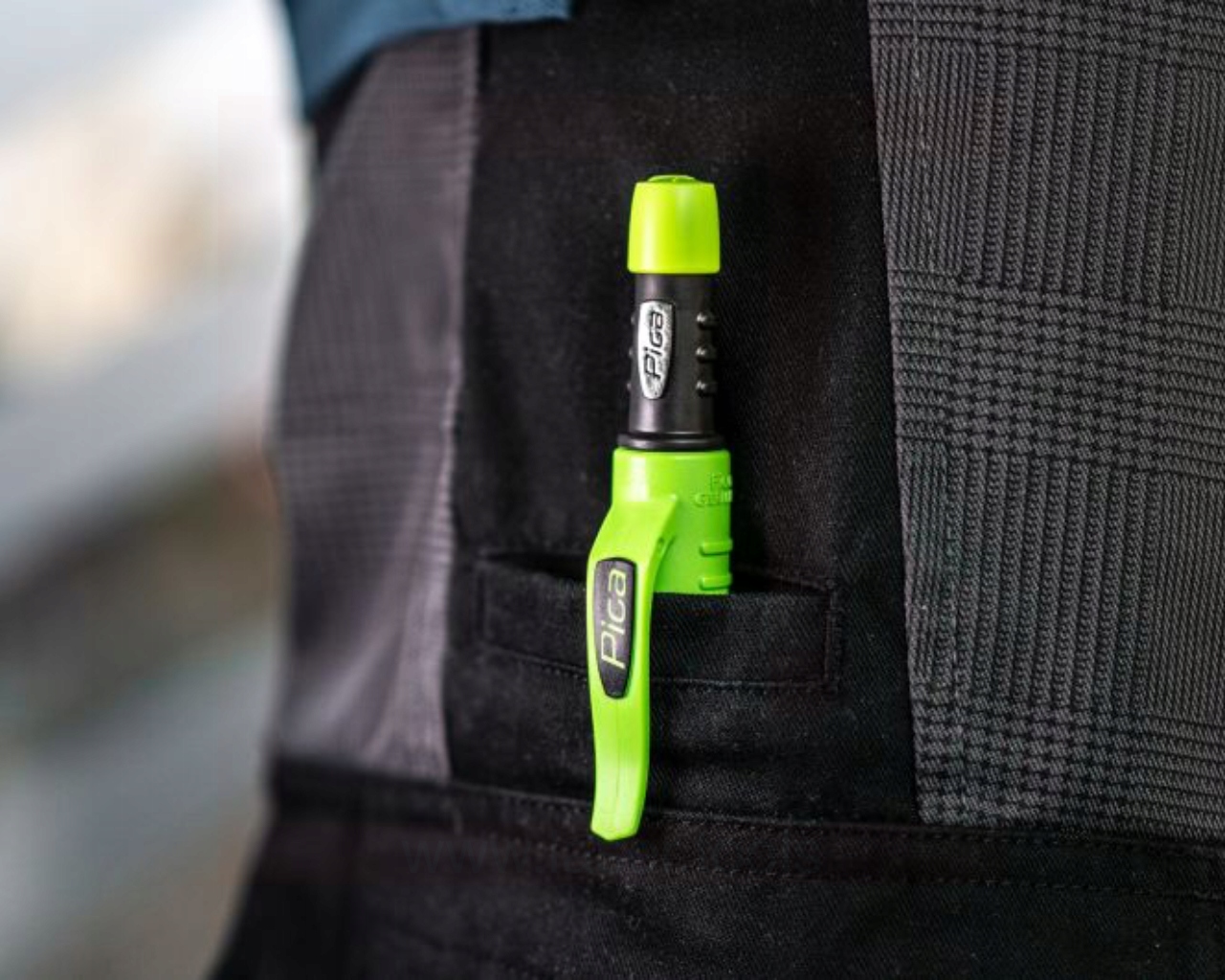 Тонкий робочий наконечник дозволяє робити мітки навіть у важкодоступних місцях, напр. в отвори, уздовж напрямних, у прорізи. Міцний затиск дозволяє зручно закріпити олівець у кишені, на поясі чи в кишені робочих штанів, щоб інструмент завжди був під рукою.