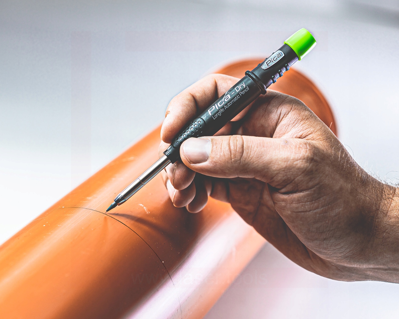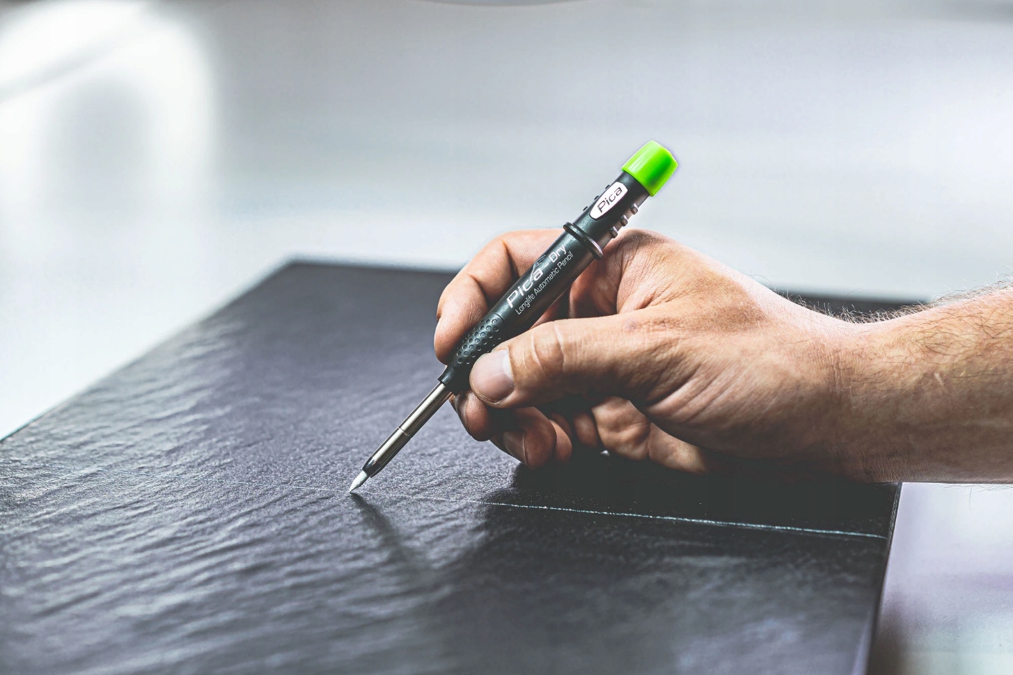 PICA 3030 — це практичний автоматичний олівцевий маркер, призначений для роботи в реальних будівельних умовах, а не за чистим столом. Він підходить для розмітки на дереві, гіпсокартонних плитах, плитах OSB, бетоні, цеглі, плитці та інших типових будівельних матеріалах.