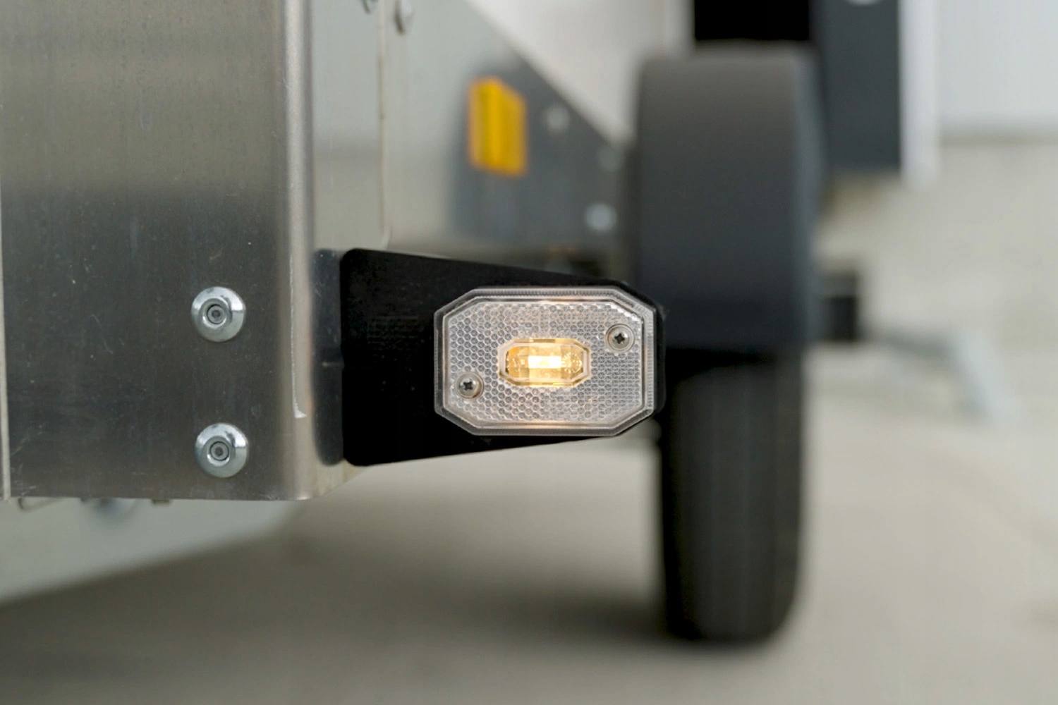 Передній габаритний ліхтар на кутовому кронштейні. Його можна встановити як збоку, так і спереду причепа. Лампа оснащена рефлектором - що відповідає вимогам для обладнання автомобільних причепів шириною більше 160 см з переднім освітленням контуру. Залежно від використовуваної лампочки джерело живлення 12V або 24V. Лампа продається в комплекті з кабелем 0,5м.