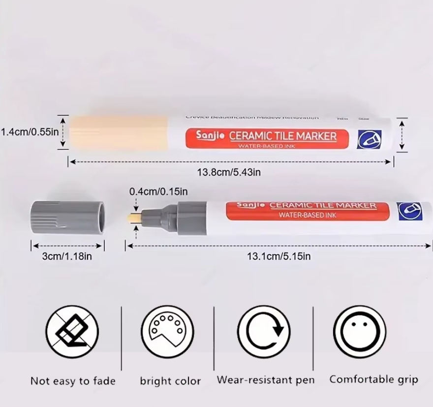 - Точне оздоблення: Зручний кінчик пера дозволяє точно наносити фарбу на шви, не забруднюючи плитку.