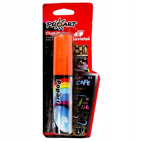 Маркер Popart з крейдяною фарбою для малювання на «гастрономічних» дошках і скло. Не розмазується. Він широко використовується, наприклад, у ресторані, пабі, квітковому магазині, туристичному агентстві, салоні краси, салоні мобільного зв’язку. Стійкий до погодних умов - переважно дощу.