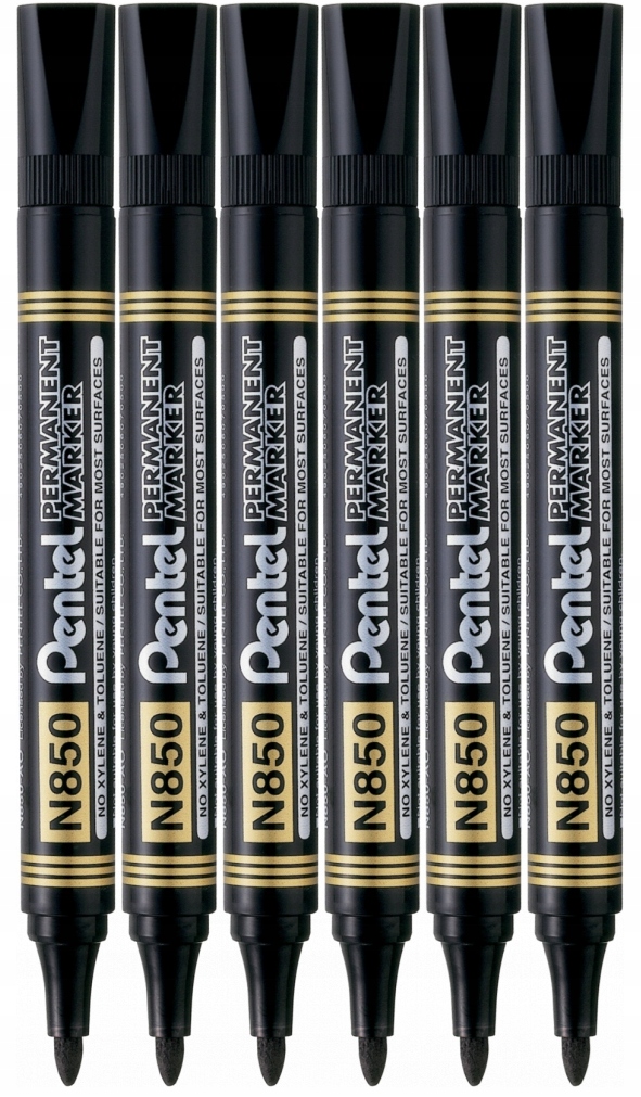 МАРКЕР ПЕРМАНЕНТНИЙ PENTEL N850 КРУГЛИЙ ЧОРНИЙ ПИСАК ДЕРЕВО МЕТАЛ СКЛО х 6