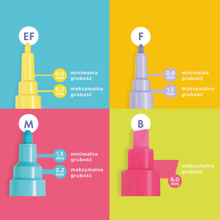 Завдяки тому, що вони мають різну товщину наконечників, вони надають багато можливостей щодо декупажу, тобто точного малювання контурів, опуклостей чи написів.