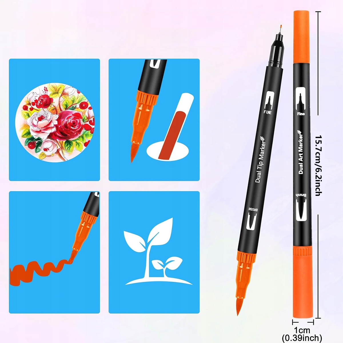 Набір з двох пензликів, 100 кольорів у чорному футлярі, товсті та тонкі ручки, набір пензликів, ручки для журналювання, каліграфії, манги, книжки-розмальовки та рукописні написи