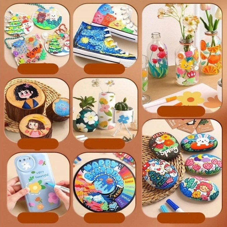 🎨 Створюйте унікальні подарунки: Персоналізовані кухлі, прикраси чи сувеніри назавжди залишаться в пам’яті одержувачів. Акрилові маркери – це ключ до створення унікальних та емоційних подарунків.