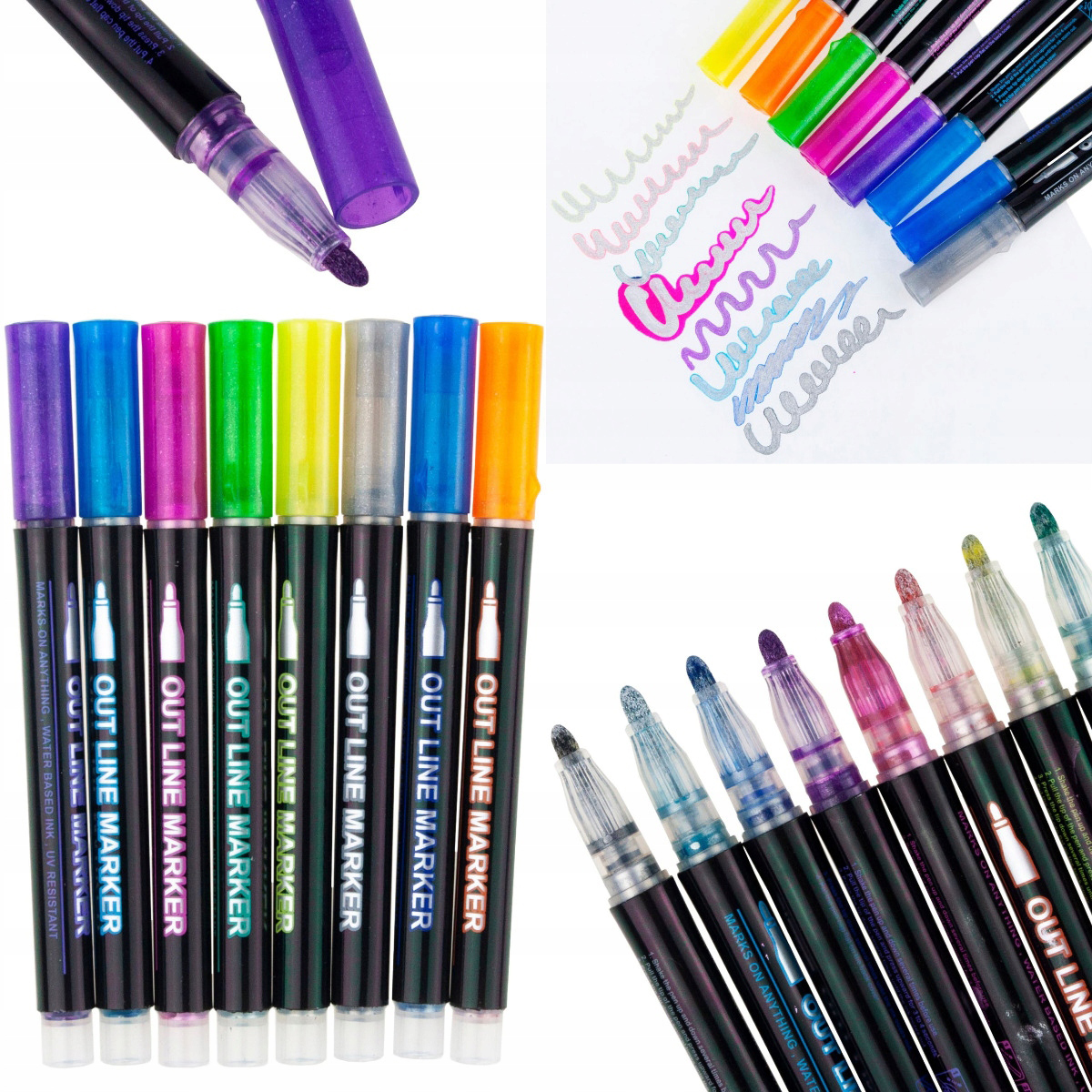 ✅ЧАРІВНИЙ ЕФЕКТ ПОДВІЙНОЇ ЛІНІЇ - маркери створюють унікальний ефект подвійної лінії з металевим блиском. З кожним штрихом ви отримуєте центральну лінію в одному кольорі, оточену блискучим контуром - ідеально підходить для унікальних художніх проектів.