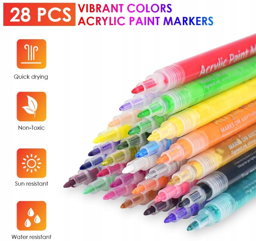 Акрилові маркери на полотні плавно перетікають і покривають ідеально. Ідеально підходить для рукоділля чи створення творів мистецтва майже на будь-якій поверхні, тому ви можете легко писати на: