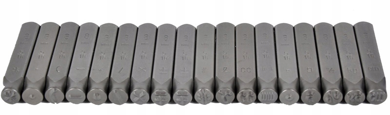 Набір нумераторів, цифрових маркерів (0-9) і спеціальних символів виготовлений із міцного сплаву та упакований у міцний пластиковий футляр.