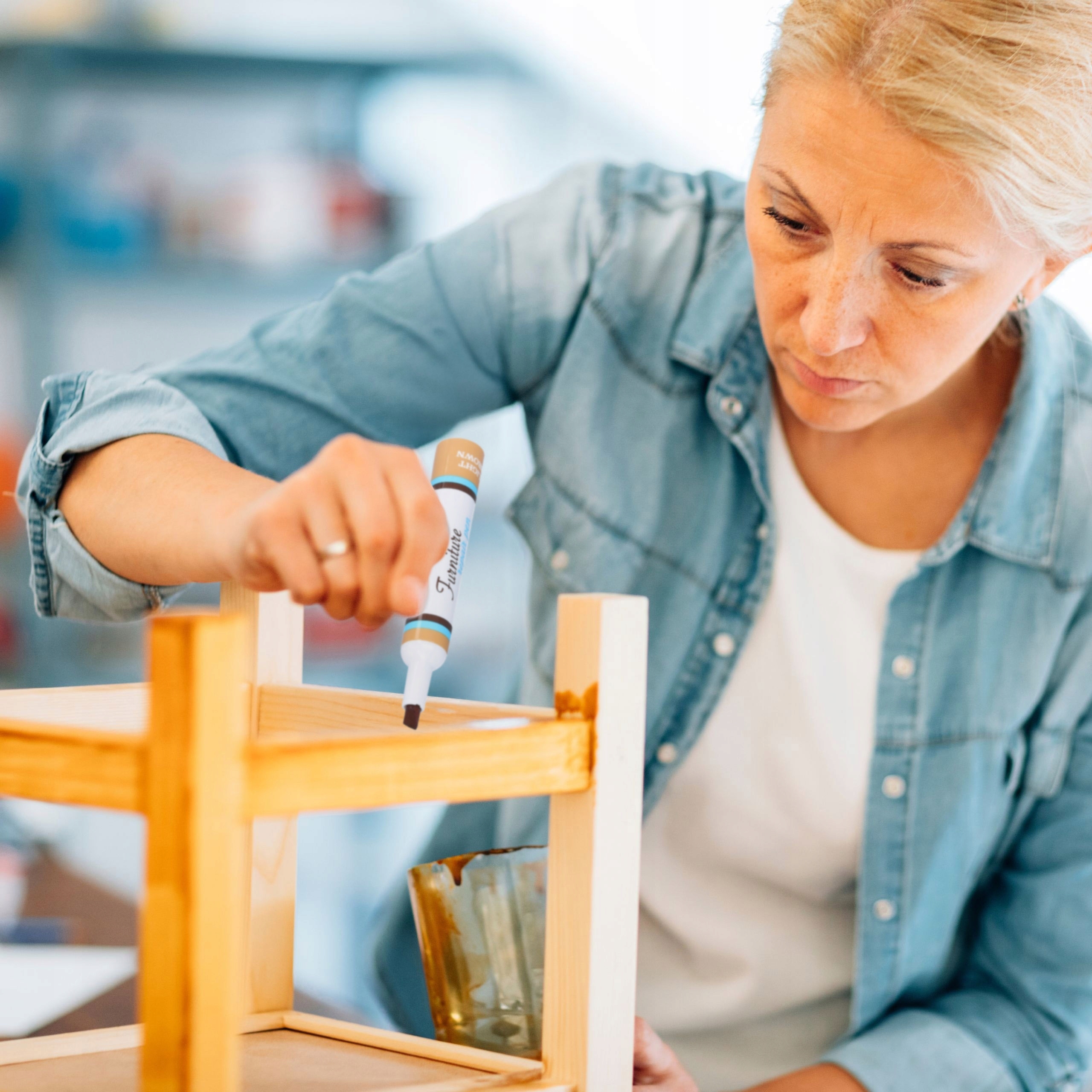 Застосування простий та комфортний - просто нанесіть маркер на окреслену поверхню і негайно насолоджуйтесь вдосконаленим зовнішнім виглядом. Продукт ідеально підходить для меблів, панелей підлоги або інших дерев’яних елементів.