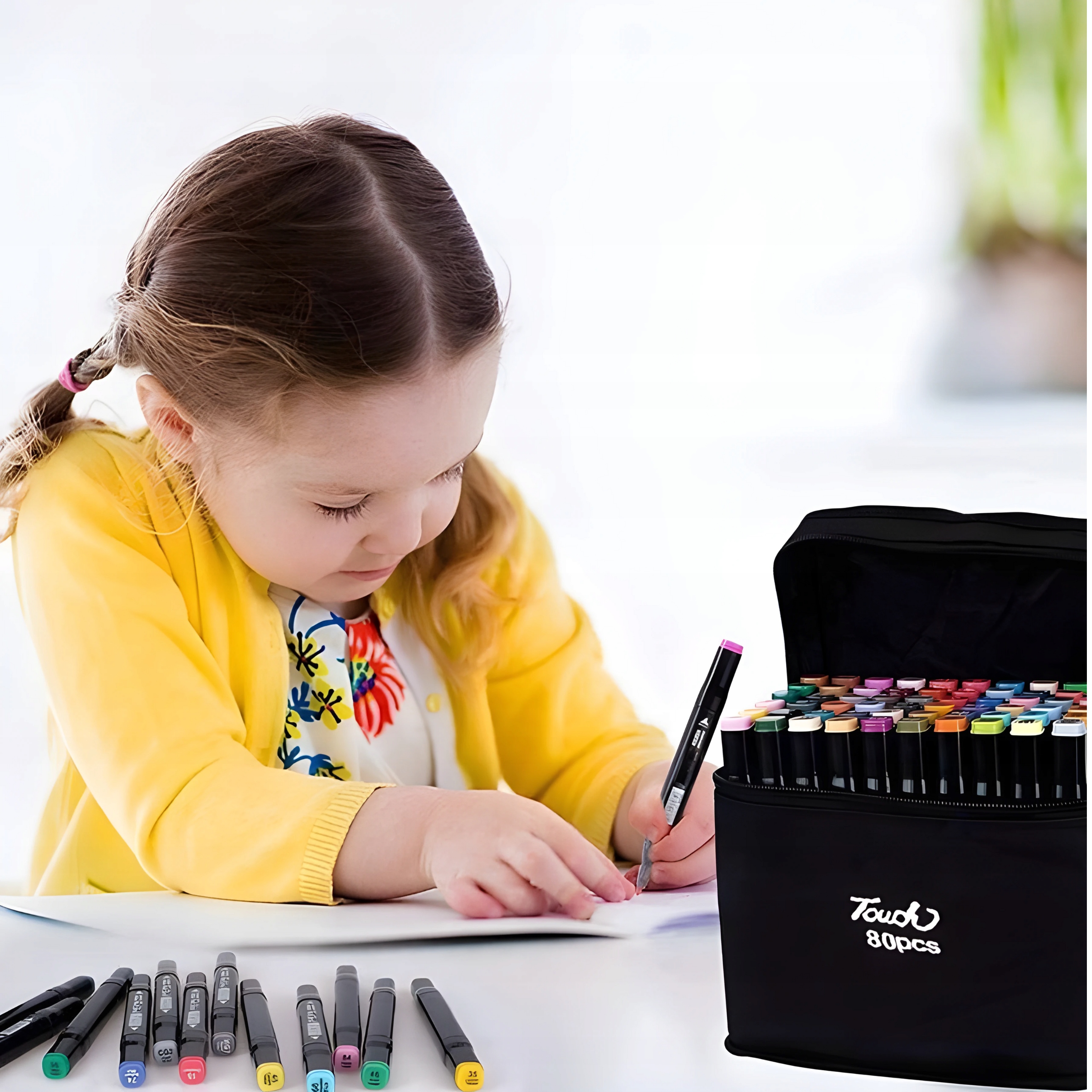 Набір із 80 маркерів є ключем до розкриття творчості кожного користувача. Насичені кольори та різноманітні наконечники дозволяють експериментувати з техніками та стилями малюнку. Ідеально підходить для ескізів, малювання та створення графіки - ці маркери заохочують до художніх експериментів і розвитку власного стилю. Завдяки їм кожен проект набуде неповторного характеру та виразності.