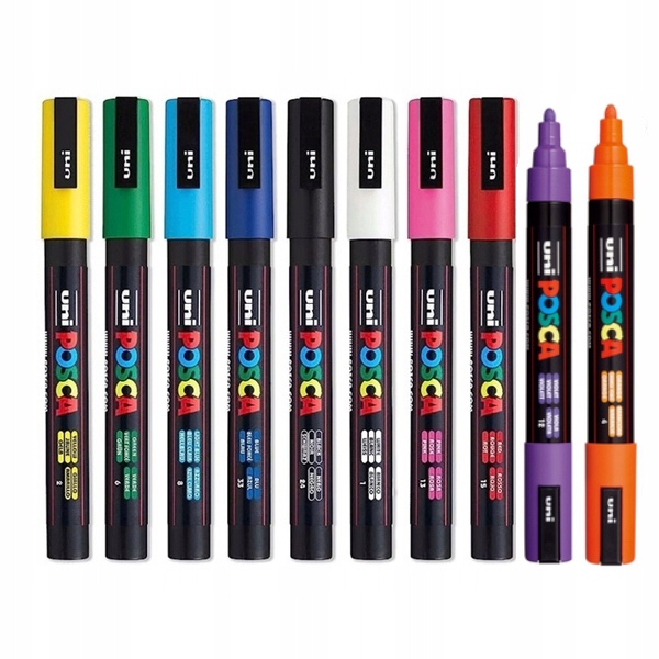 MARKERY DEKORACYJNE Z FARBĄ OKRĄGŁE UNI POSCA PC-5M MIX - 10 kolorów