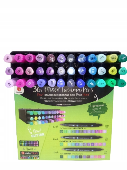 MARKERY METALICZNE ALKOHOLOWE PODWÓJNE 36 szt POMARAŃCZOWE GLITTER METALIC