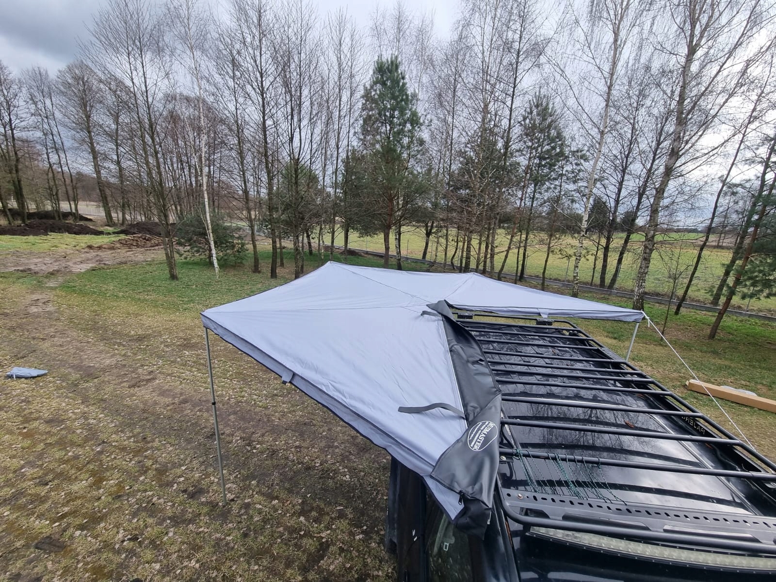 покрівля, прикріплене до багажника даху або рейтингу за допомогою ручок з набору.