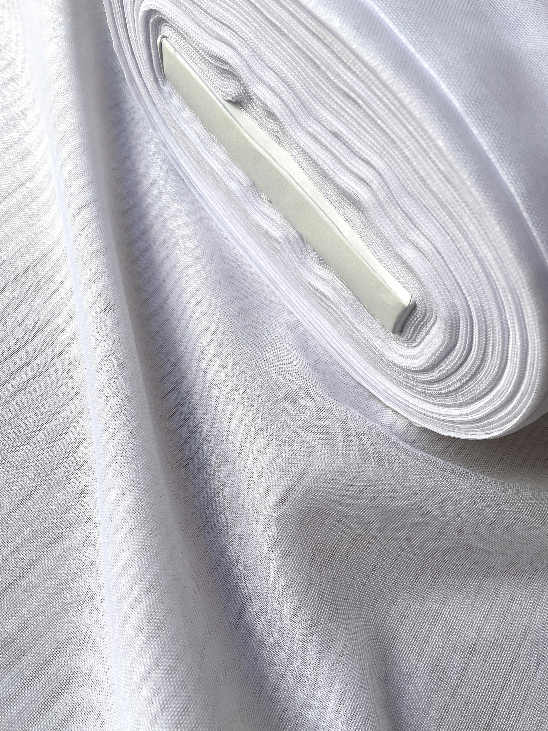 Маркізет білим, делікатним із сирою структурою. Внизу він закінчений з вагою свинцю, яка допомагає ідеально укладати матеріал після підвіски.