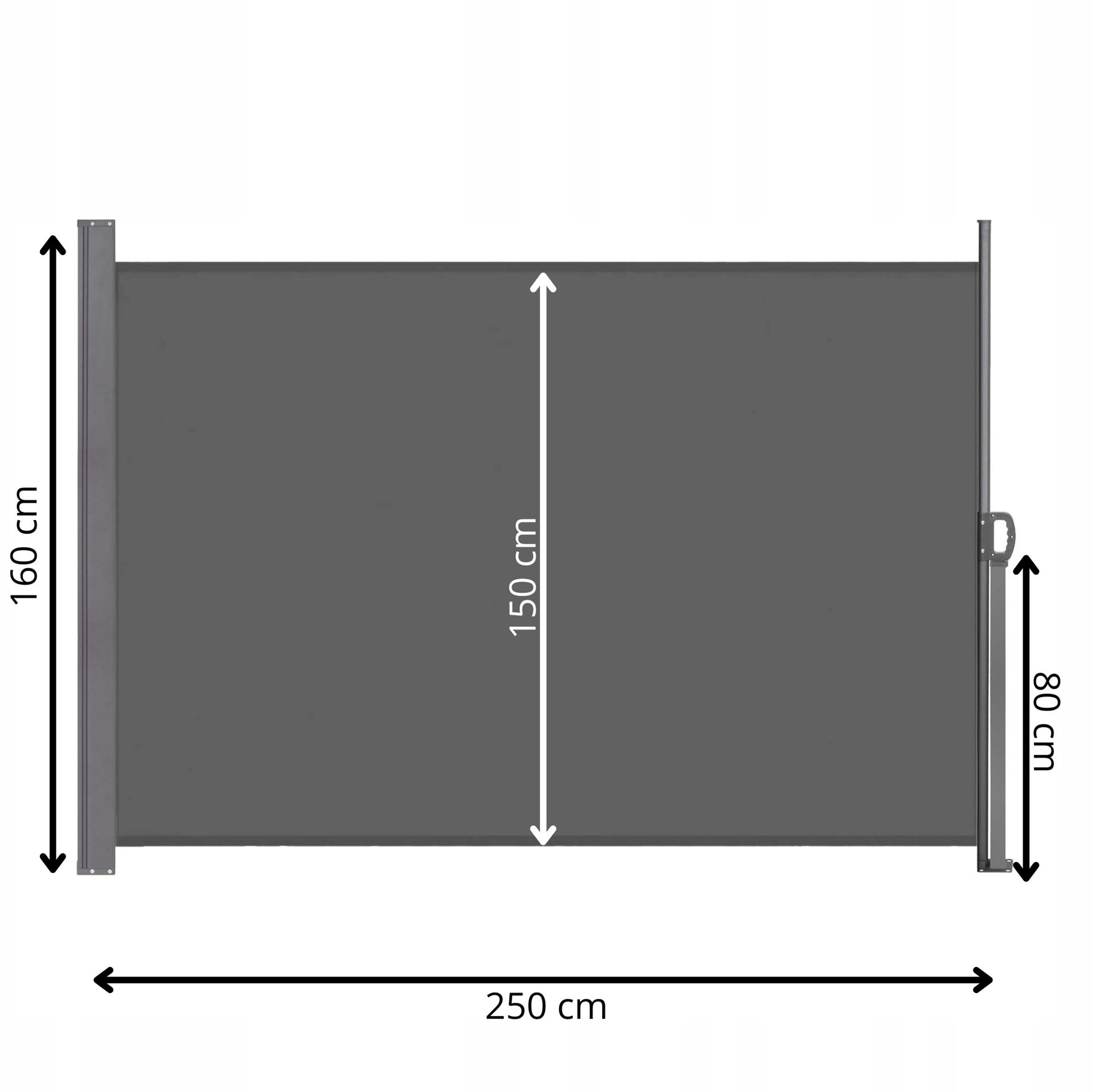 Можливість встановлення кронштейна у вибраному місці гарантує вам дуже просте регулювання довжини до потреб . Максимальна довжина тенту становить 250 см , тому незалежно від того, чи це балкон, тераса чи сюжет, ви можете легко прикрити для вас зручну область.
