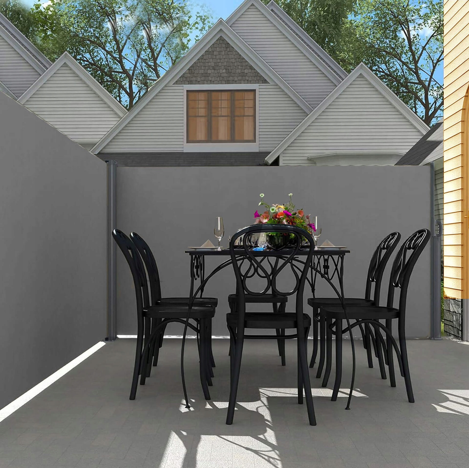 Набір включає повні інструкції та необхідні елементи , з якими ви можете легко ви збираєте бічний тент у вашому саду. Спочатку прикріпіть касету з тканиною до стіни, потім кронштейн до землі, на обраній вами відстані.