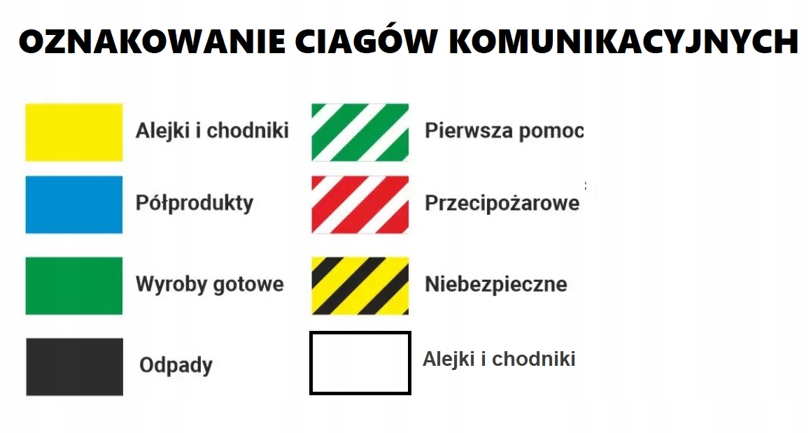 - Позначення небезпечних місць відповідно до правил охорони праці - високі пороги, низькі перемички, небезпечні краї тощо (жовтий та чорний) .