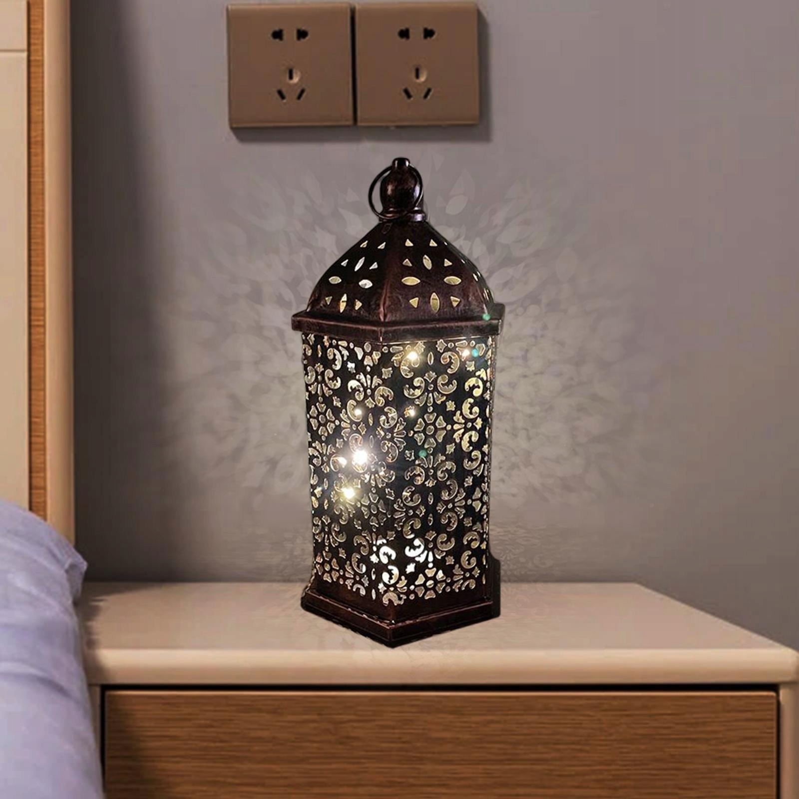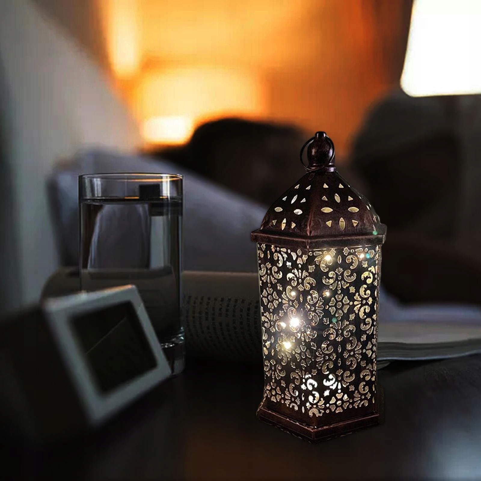 Марокканський, порожній, різьблений ліхтар у стилі ретро, кованого, коричневого, 29,7 х 15 см