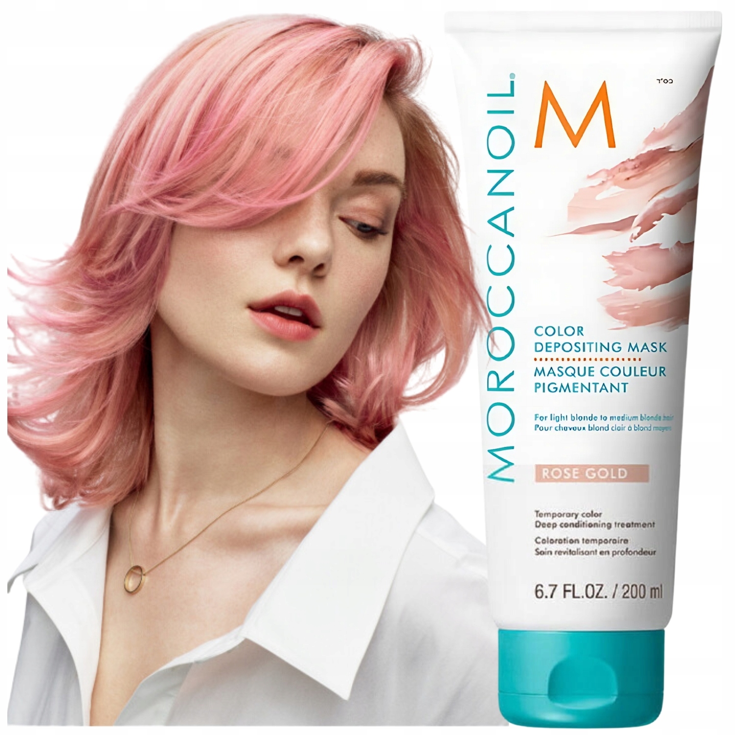 Марокканозна маска для відкладення рожевого золота 200 мл - це маска для волосся, яка не тільки інтенсивно живить і зволожує, але й зміцнює і підкреслює теплий золотий відтінок волосся. Маска в тіні рожевого золота дозволяє тонко давати блиск і відновити колір, залишаючи волосся м'якими і сповненими здорового блиску.